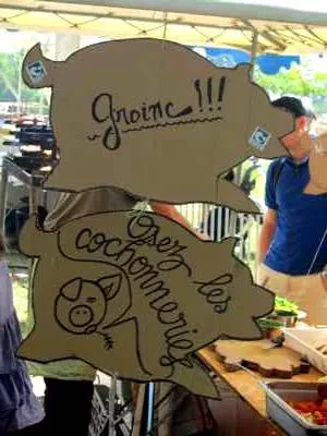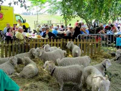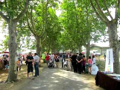 Et à midi, tous à table (aux tables) pour un pique-nique géant. En effet, les organisateurs ont eu la chouette idée d’installer tables et bancs en grand nombre à l’ombre des arbres. Comme ça, tout le monde peut en profiter. Il ne reste plus qu’à se fournir en produits gourmands et à les déguster à table ensuite. Le problème, c’est qu’on ne sait vraiment pas quoi choisir : aiguillettes de canard, aligot à la tome du Ramier, fromages fermiers, gâteaux aux noisettes du coin, crêpes au lait de brebis, fruits ultra frais, confits, chasselas de Moissac, assiettes de cochonnailles, croustades …