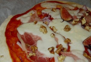 Pizza d’automne figues noix chèvre jambon
