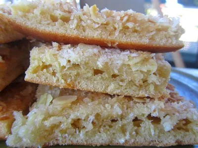 Nid d’abeilles, gâteau allemand (Bienenstich) à la noix de coco et aux amandes