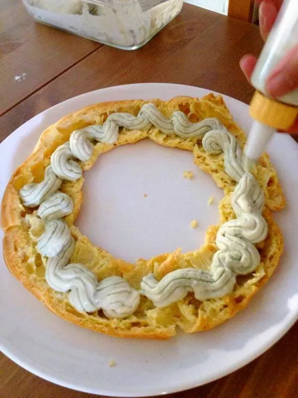 Nous avons participé au Concours Roquefort Papillon avec cette recette improvisée : la fameuse pâtisserie Paris-Brest devient le Paris-Roquefort, salé, avec une crème mousseuse au Roquefort. A essayer de toute urgence, pour une entrée raffinée !