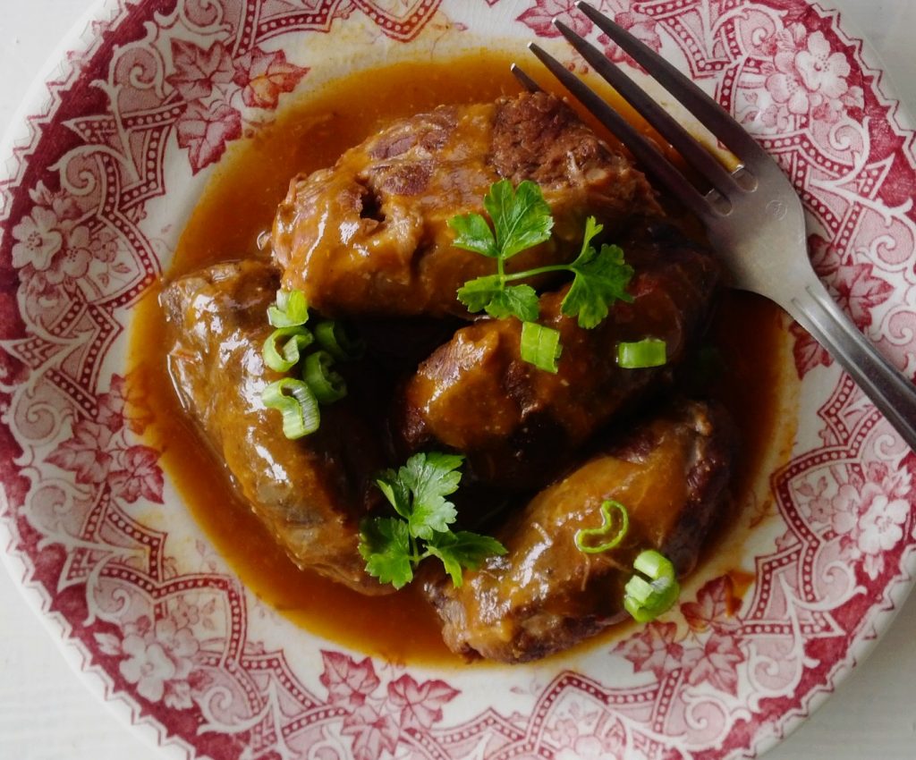 Quand les joues sont cuites, je les sépare provisoirement de la sauce. Je remets la cocotte sur le feu pour faire réduire la sauce et concentrer encore plus les saveurs, avant d’y remettre les joues et de servir. Un bon riz d’accompagnement fera l’affaire.