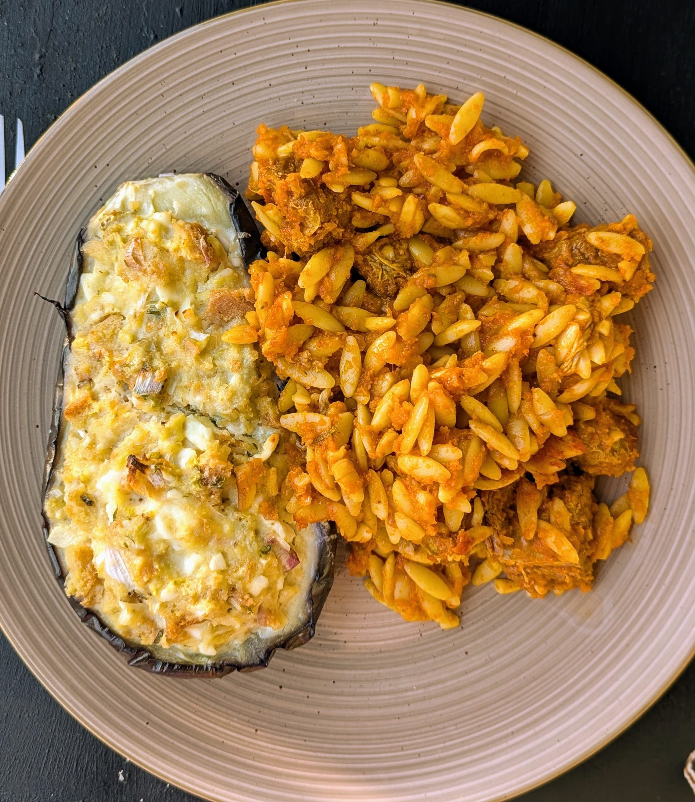 Giouvetsi grec, bœuf à la sauce tomates et pâtes orzo