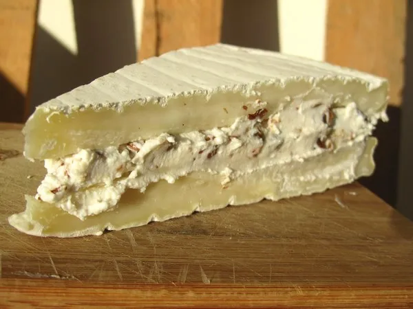 L’autre jour en passant devant une célèbre fromagerie de la ville, je suis tombée sur un superbe brie qui était farci de différentes choses fort appétissantes.
