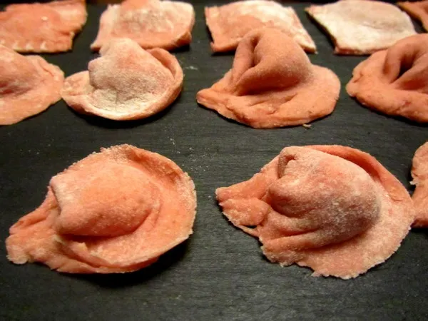 Tortellinis à la betterave et au Rocamadour, pesto rosso de noix